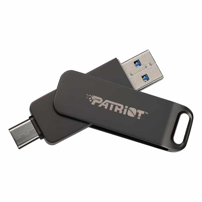 فلاشة باتريوت Rage R550 بسعة 32 جيجابايت، USB 3.2 Gen 1 (ثنائية الواجهة A + C، تصميم متأرجح، لون Dark Shadow)