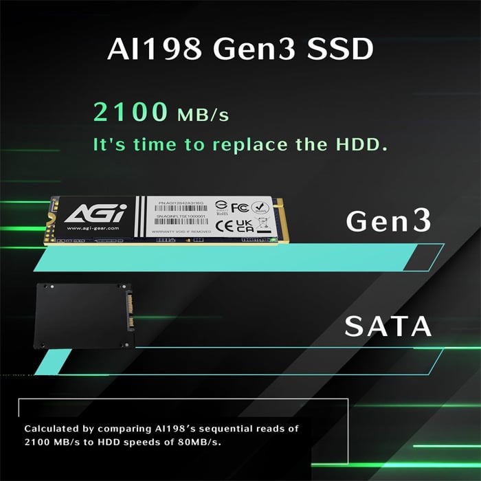- Model: SSD AGI AI198 256GB M.2 2280 PCIe Gen 3×4