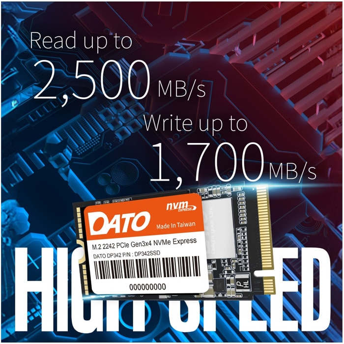 Dato DP342 512GB M.2 2242 PCIe Gen 3×4 SSD – Up to 2500MB/s Read, 1700MB/s Write, High-Speed Storage for Compact Systems More Details