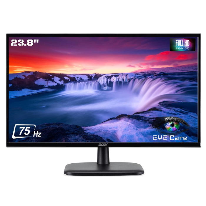 شاشة Acer EK240Y Cbi – مقاس 23.8 بوصة، لوحة VA، دقة Full HD، زمن استجابة 5 مللي ثانية، منافذ VGA + HDMI، سماعات مدمجة 2 واط ×2