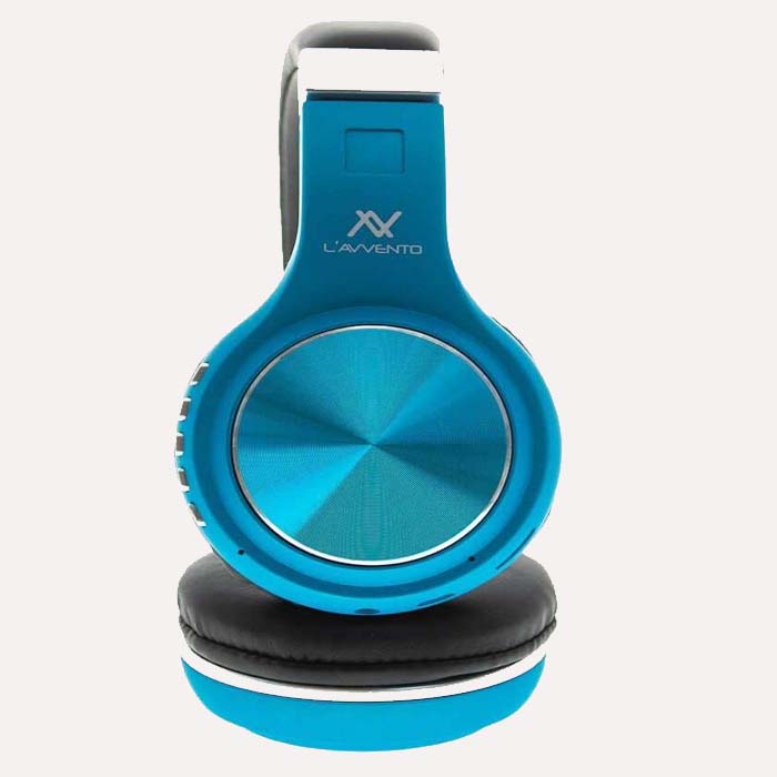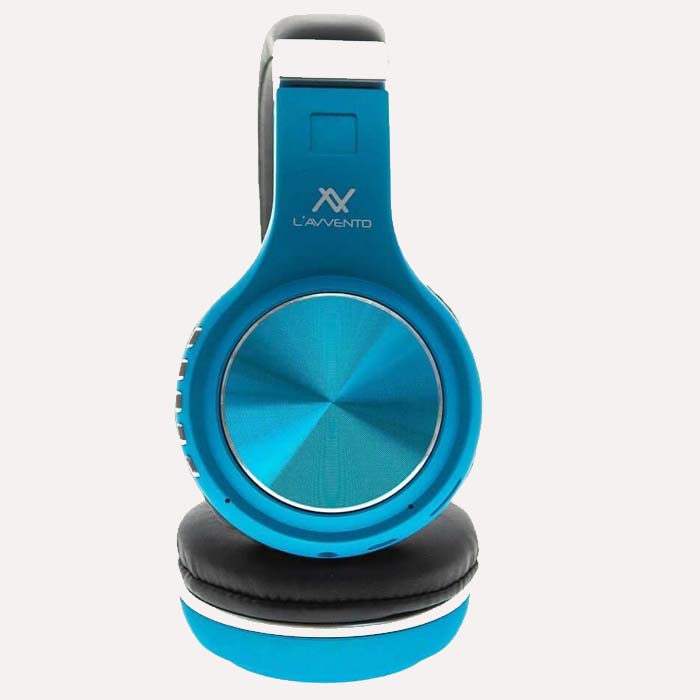 🔊 سماعة رأس لاسلكية من Avvento، موديل HP-10-L، بتصميم أنيق باللون الأزرق، مزودة بتقنية بلوتوث وميكروفون مدمج لصوت نقي.