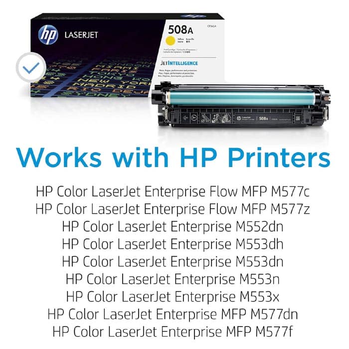 نوصي باستخدام خرطوشة HP 508A الأصفر للحصول على مطبوعات احترافية وموثوقة بالألوان على جميع طابعات HP Color LaserJet Enterprise المتوافقة.